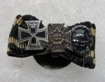 German WWI 3-Place Lapel Button Ribbon Bar, EK2, Hindenburg & Black Wound Badge