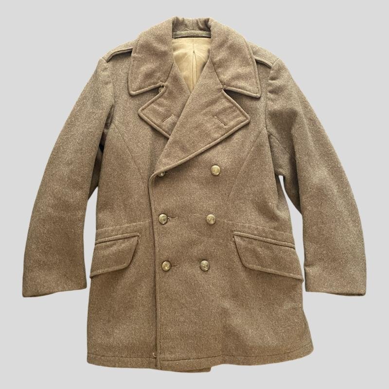 Original WW2 New Zealand Forces keep coat made from an army greatcoat, shortened for use by drivers. Cost is complete with all of its relevant NZ insignia. Wool is in great shape without damage or repairs. Inside a faint makers stamp is present which looks to read 1942. The coat is a British army standard size 5.