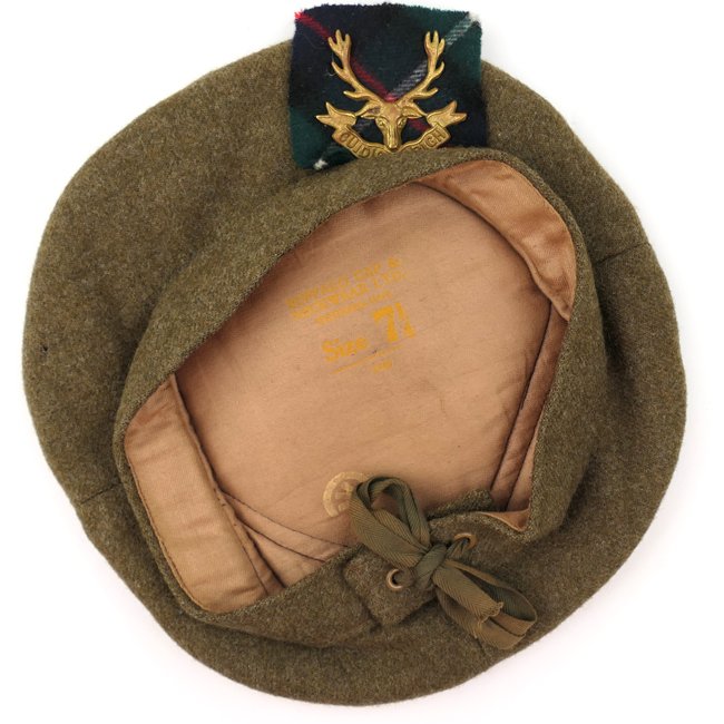 Canadian 'Seaforth Highlanders' Tam o' Shanter. The Tam o' Shanter is nicely maker marked by the 'Buffalo Cap & Neckwear Ltd.' company from Winnipeg and dated 1940, the cap is also marked with a Canadian Broad Arrow. The size of the cap is a 7¼. The cap is having a nice 'Seaforth Highlanders' Cap Badge attached, complete with tartan. Nice original example in very good condition.