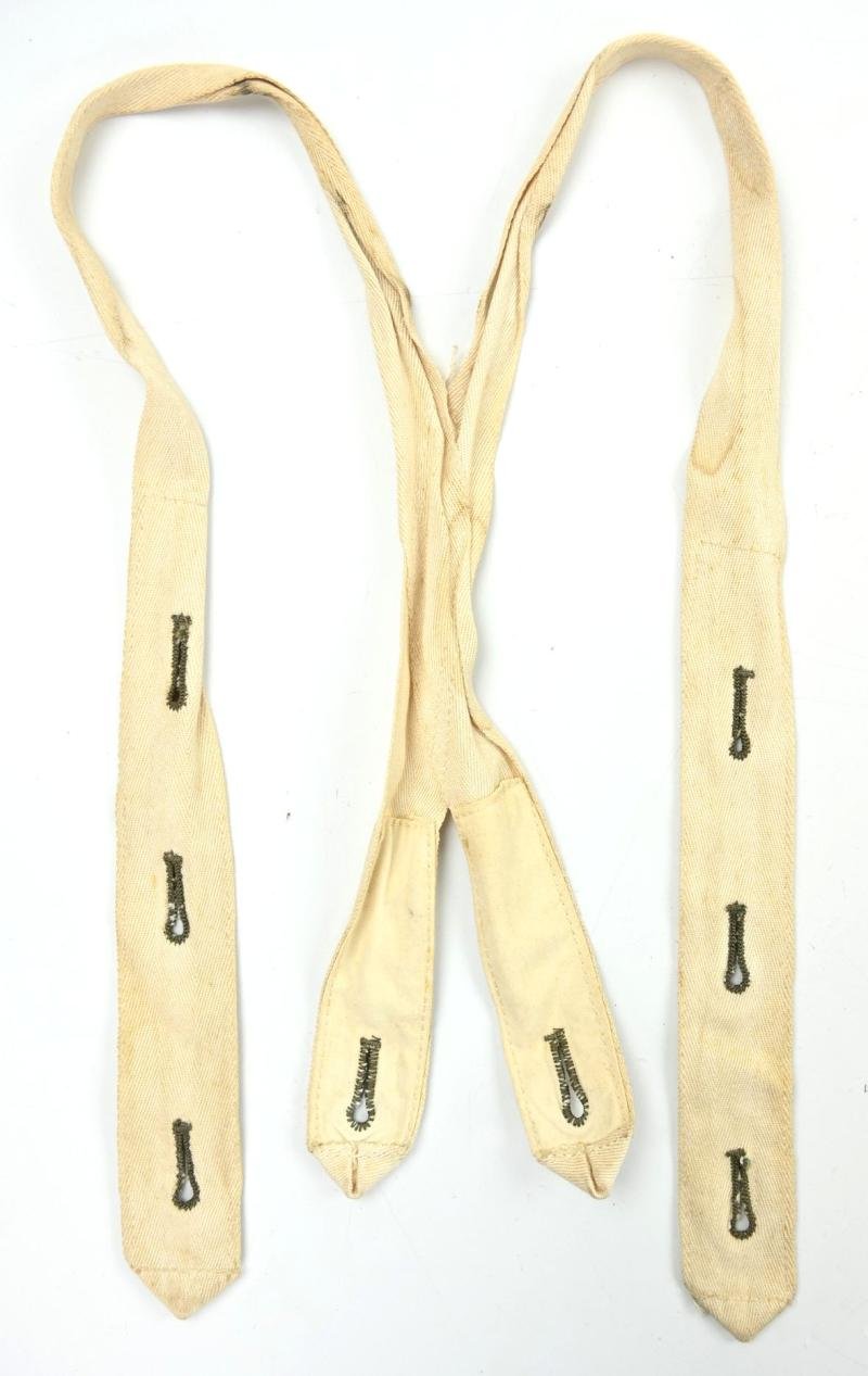 In a very good condition a German Wehrmacht/Luftwaffe Reversible Winter Parka Suspenders. The suspenders comes in a very good usable shape and in the white reversible colour. Very nice to complete your Sumpf/ Splittertarn reversible parka!
