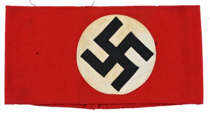In a very good condition a German NSDAP Armband. The early NSDAP period wool armband comes in red linnen base with a black sewn swastika in a white linnen centre. Inside is still the original paper label present! A very good armband with some small mothdamage to the wool.