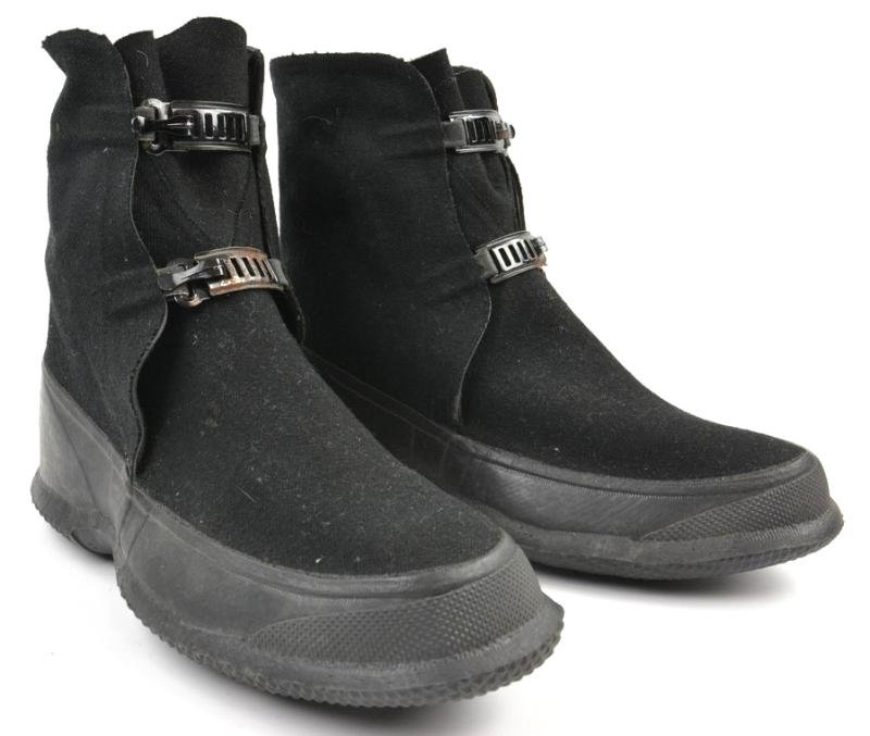In a very good condition a matching set of US WW2 Artic Overshoes. The early 2-buckle overshoes comes in size 7 and were made by the United States Rubber Company. Dated 1940. The shoes comes with the paper label still inside. A very nice early pair of Artic Overshoes.
