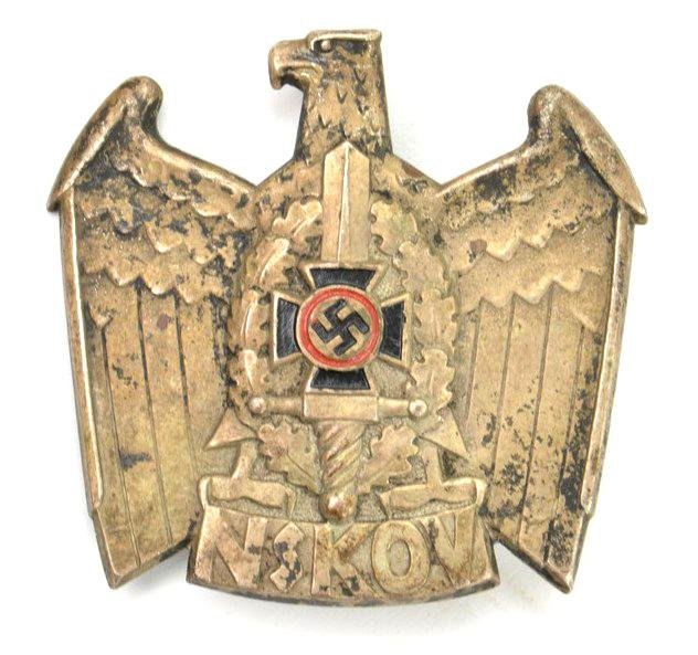 In a very good condition a German NSKOV (Nationalsozialistische Kriegsopferversorgung) Visor Cap Badge. The badge is complete with the functional needle on the reverse side and is maker marked by Deschler & Sohn from Munich. A very nice badge!