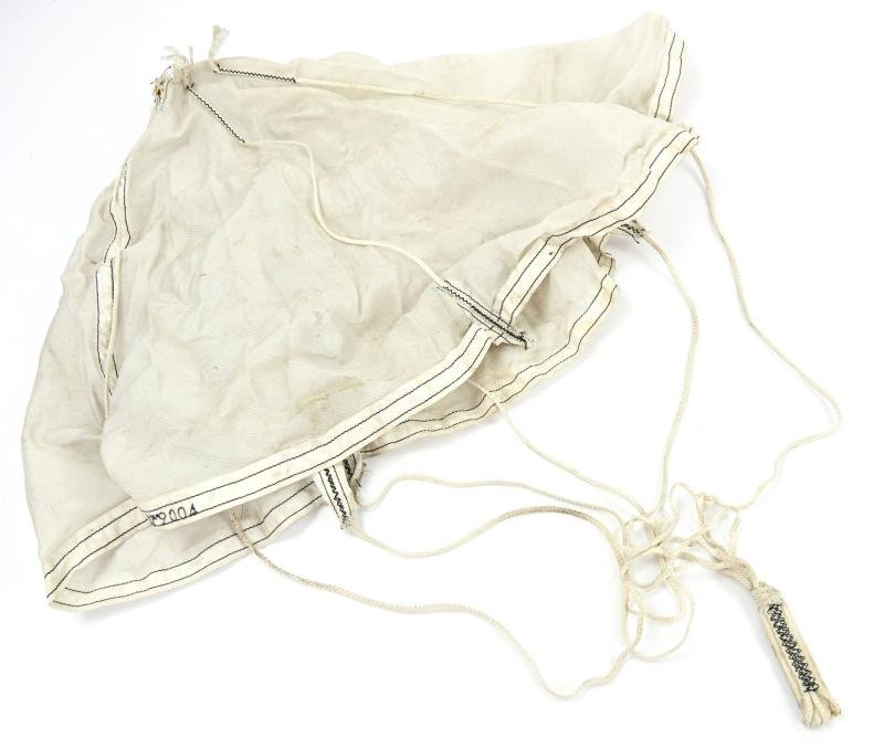 In a very nice used condition a US WW2 Artillery Parachute. The parachute comes in white silk and is complete with the reinforcements and most of the lines. It has a diameter of 80cm. These artillery parachutes were mostly used byflare grenades. A very nice parachute for display purposes!