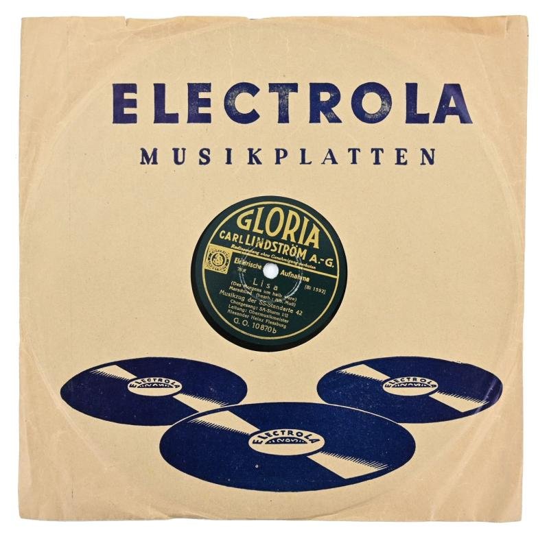 In a very good condition a German Third Reich Era Music Record 'SS-Standarte 42'. The record comes with the songs 'Lisa' and 'Lore Lore'. A very nice record for display!