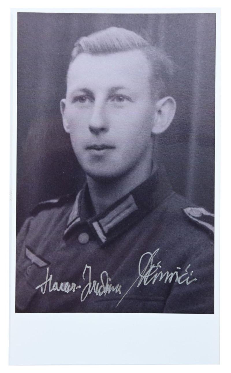 In a very good condition an original signature of Hans-Joachim Heinrici. Hans-Joachim earned the Knight's Cross of the Iron Cross on February 14, 1945 as Hauptmann und Führer of the II. Bataillon/ Grenadier-Regiment 431 of the 131. Infanterie-Division.