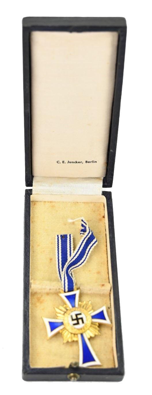 In a very good condition a German Mother's Cross in Gold. The cross is in a very good condition and comes together with the original case made by CE Juncker from Berlin.