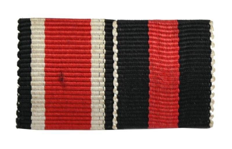 In a very good condition a German Wehrmacht Medal Ribbon Bar. The bar contains the medal ribbons of the Iron Cross 2nd Class and the German Annexation medal of Sudentenland.