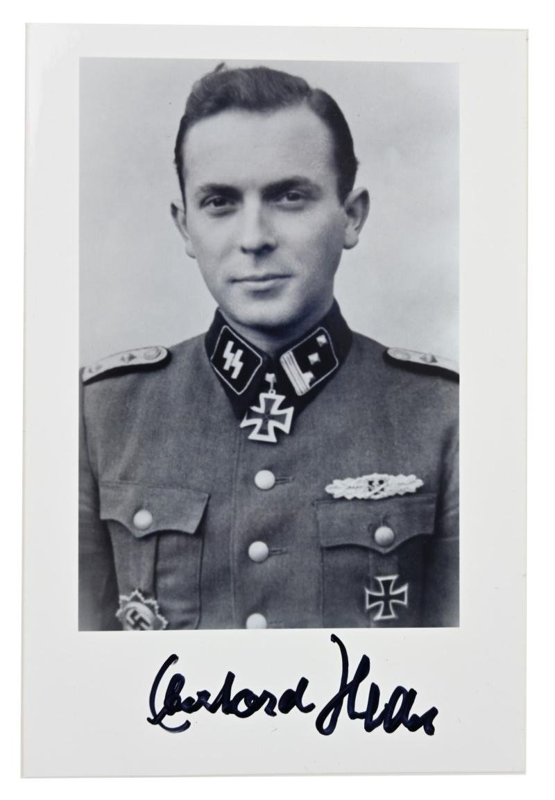 In a very good condition a German postwar portrait picture with original signature of Waffen-SS Member 'Eberhard Heder'. SS-Sturmbannführer Eberhard Heder earned the German Cross in Gold on March 11, 1943 as SS-Obersturmführer with the 3. Kompanie/ SS-Pionier-Bataillon 5 “Wiking” and the Knight's Cross of the Iron Cross on November 18, 1944 as SS-Hauptsturmführer und Führer of the SS-Panzer-Pionier-Bataillon 5 of the 5. SS-Panzer-Division “Wiking”.