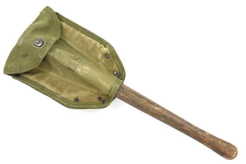 In a very good condition a US M-1943 Intrenching Tool or Shovel. The shovel is nicely maker marked by Wood and 1944 dated. The cover is US stamped and is 1944 dated and made by Dave Mfg Co.