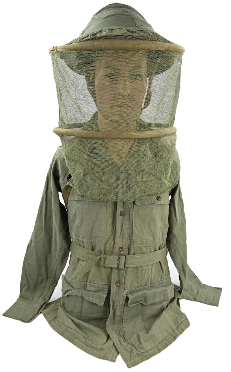 In a very good condition a British WW2 Jungle Green Musquito Helmet Net. The net comes in a never used condition and is on the inside nicely stamped and 1944 dated. A very stunning item for mannequin display!