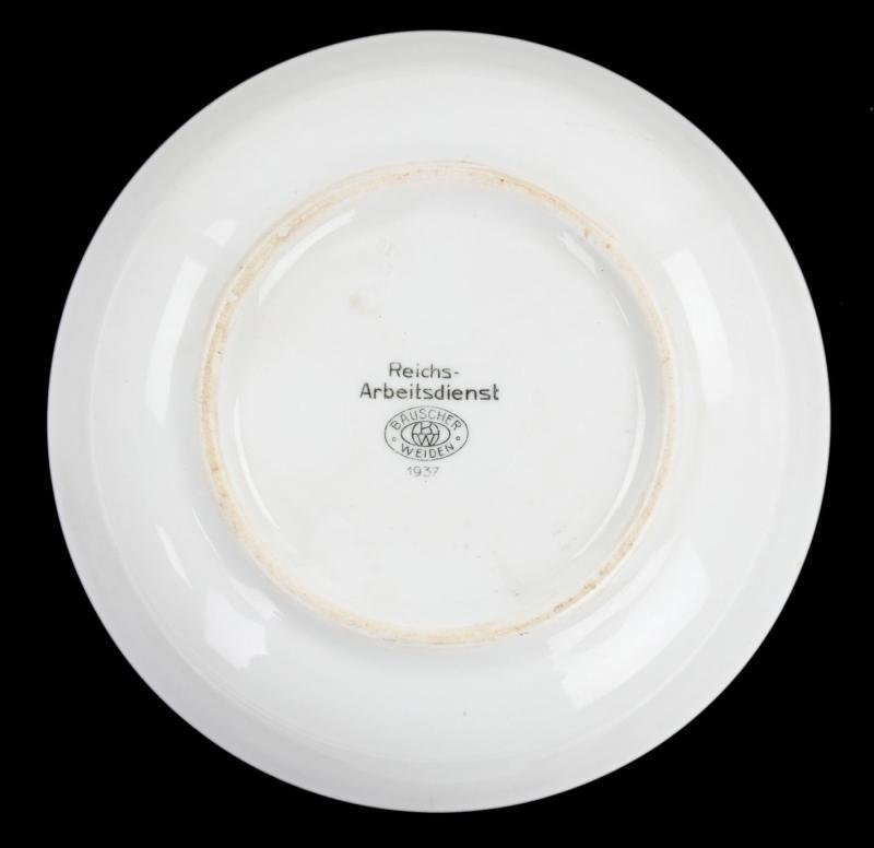 In a very good condition a German RAD (Reichsarbeitsdienst) Tea/Coffee Cup Plate. The plate is on the bottom nicely RAD and maker marked. Dated 1937.