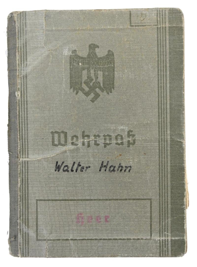In a very nice condition a German Wehrpass on the name of Unteroffizier Walter Hahn. Walter was a veteran of WW1 from an artillery unit and was issued to duty during the early days of WW2. The wehrpass comes with various extra documents of Walter.