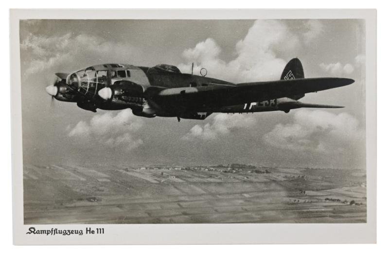 In a very good condition a German LWuftwaffe Postcard with on the front a 'Kampfflugzeug Heinkel He 111'.