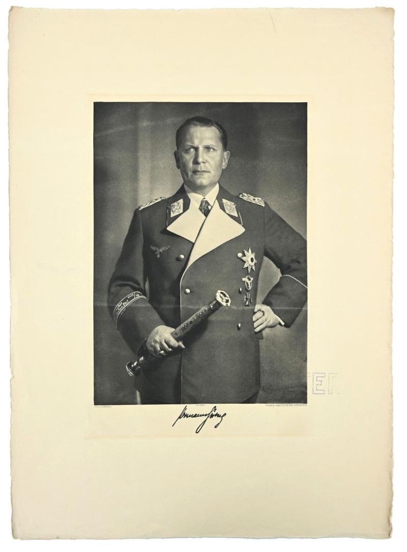 In a very good condition and extreme rare to find a Proof Example of a portrait picture of Reichsmarshall Hermann Göring. The print comes in a size of 37x53cm and is uncut. The paper contains the pressing for a framework. This rare litho comes directly from the famous publishing house 'Franz Hanfstaengl' from Munich were it was discovered last year. Franz Hanfstaengl was one of the intimate followers of Adolf Hitler. Hanfstaengl and Hitler remained close through the 1920s and early 1930s. He considered Hitler a diamond in the rough, lacking refinement and social skills. He took it upon himself to do the polishing. Introducing Hitler to Munich's high society, he helped finance the publication of Mein Kampf and, dollar rich in inflation-hit Germany, bankrolled the NSDAP's newspaper Völkischer Beobachter. A very stunning first proof example portrait of Hermann Göring in his early NSDAP party days.