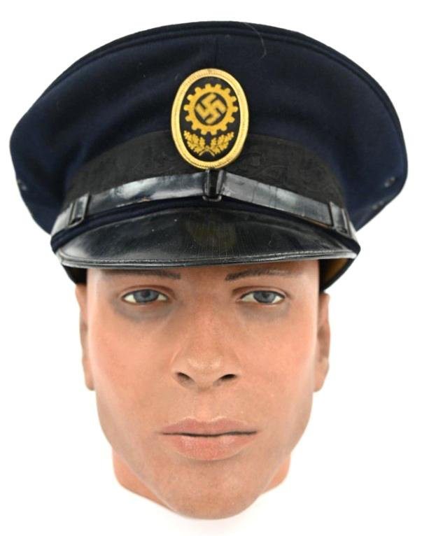 In a very good condition a German DAF (Deutsche Arbeitsfront) Visor Cap. The workers orginisation cap comes in a good mannequin head size and is nicely maker marked on the inside centre of the lining with the DAF symbol and text 'Festmutze der Deutschen Arbeitsfront'. A very nice visor cap with original applied insignia!