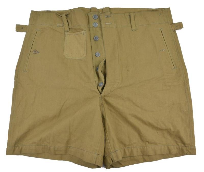 In a very good near mint condition a German Kriegsmarine pair of Tropical Shorts. The shorts comes in a very good mannequin size and is nicely RBN number marked and Kriegsmarine stamped inside the lining. A very stunning pair of shorts!