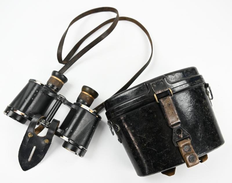 In a very good condition a German Wehrmacht Binocular 6x30 with Carrying Case. The bino comes in a bright condition and with 'strichplatte' in the lens. It's nicely maker marked by 'E.Leitz' and is marked on the bino: Dienstglas 6x30, 289189, H/6400. The bino comes with the button attachment strap and the neck strap still attached! The carrying case is made of bakelite and is complete with the leather belt straps. It comes without cracks in a very good shape! A very stunning set!