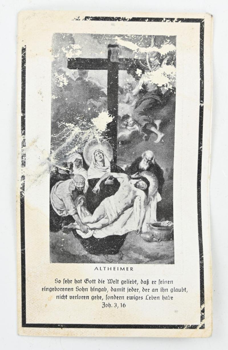 In a salty condition a German Wehrmacht (Heer) deathcard of a Soldier that died because of wounds in Sicily in 1942.