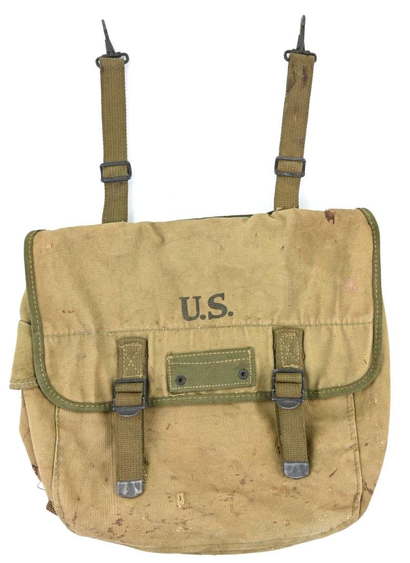 In a nice used condition a US WW2 M-1936 Musset Bag. The bag is dated 1944 and is maker marked. A very nice musset bag!