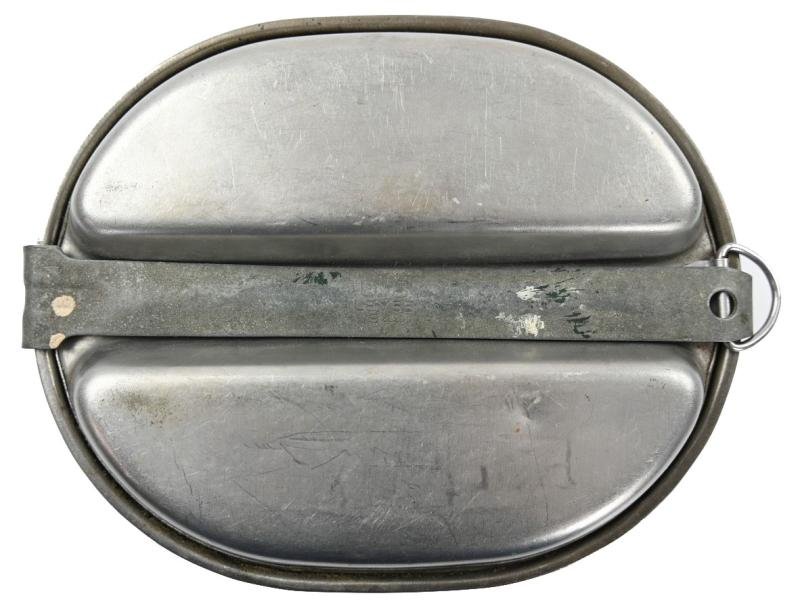 In a very good condition a US WW2 M-1932 Messtin. The stainless steel made messtin is maker marked by Leyse and dated 1944.