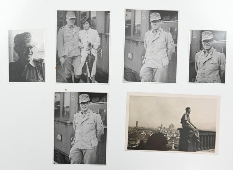 In a very good condition a set of 6 pictures of a member of the German Kriegsmarine. The soldier is wearing a tropical uniform of the Kriegsmarine. A very nice grouping of pictures.