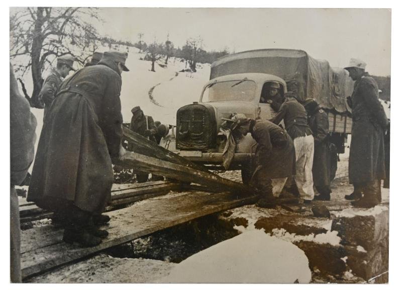 In a very good condition a German Press Photo 'Kampf in Bosniens Bergen'. The photo comes in a size of approx 12x15cm and is nicely 1944 dated.