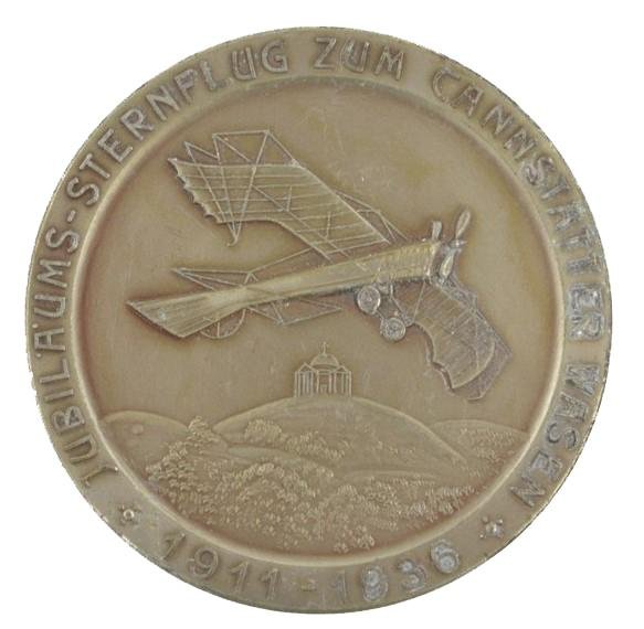 In a nice condition a German Luftwaffe/DLV (Deutsches Luftsport Verband) plaque. The plaque comes in a size of 6cm in diamter and is nicely marked: 'Jubiläums- sternflug zum cannstatter Waser. 1911 - 1936. Ortsgruppe Stuttgart des DLV'.