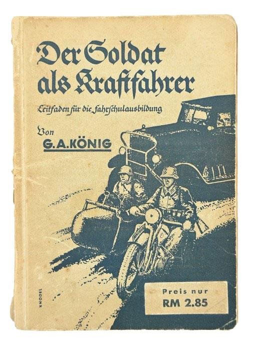 In a very good condition a German Book written by: G. A. König, Der Soldat als Kraftfahrer - Leitfaden für die Fahrschulausbildung. The book contains 294 pages and is dated 1938.