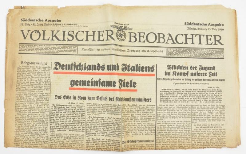 German Newspaper Volkischer Beobachter 13 March 1940