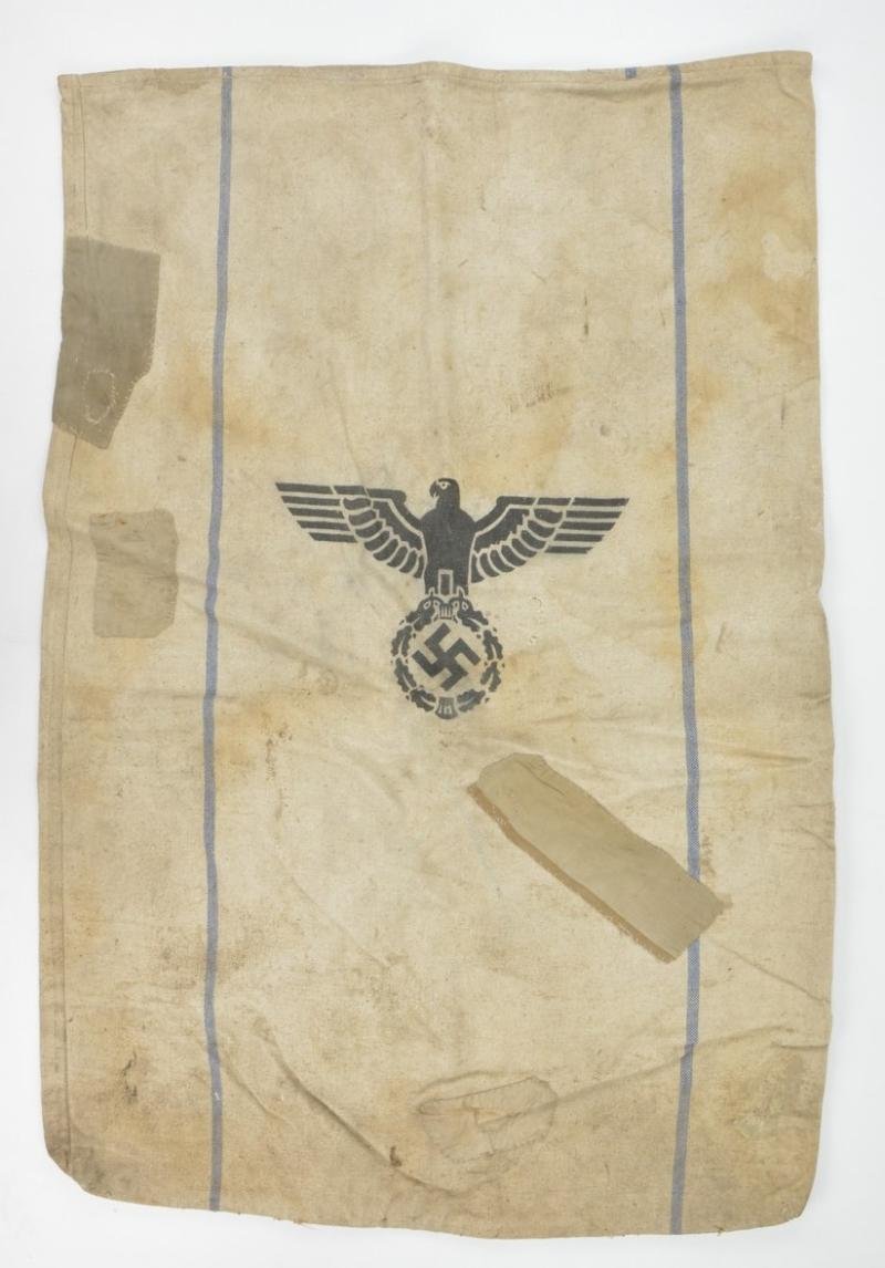Very nice and decorative Wehrmacht food supply bag with decorative Eagle and marked “H.Vpl.” Dated “1943” used for transport bread, sausage etc. etc. for feeding the soldiers in the field In used but very nice condition!