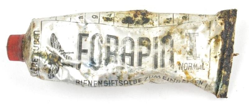 In a nice used condition a German Third Reich Medical Tube of Forapin Insect Salbe. The large tube comes with 70% of it's original content still inside.