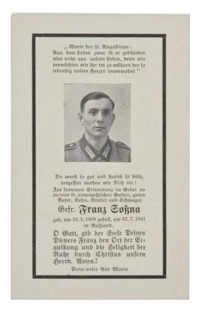 In a very good condition a German Wehrmacht (Heer) Deathcard on the name of 'Frans Gozna' Hans past away on the 12 July 1941 in Russia.