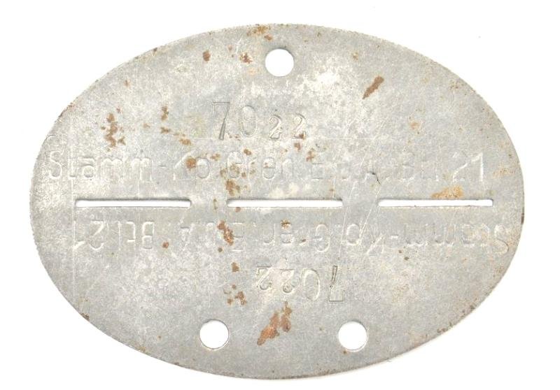 In a very good condition a German Wehrmacht (heer) Dog-Tag or Erkennungsmarke. The zinc made dogtag is from a member of the Stamm.Kp. Gren.E.u.A.Abt.21 (Stamm Kompanie Grenadier Ersatz und Ausbuildung Abteilung 21).