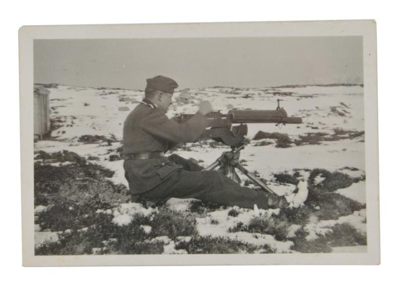 In a very good condition a German Wehrmacht Picture of a Wehrmacht soldier behind a German MG08 SMG. The picture comes in a size of approx. 4x6cm.