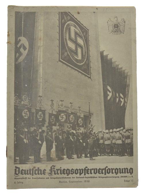 In a nicee condition a German NSKOV Magazine 'Deutsche Kriegsopferversorgung'. The magazine is dated September 1938 and comes with a stunning cover!