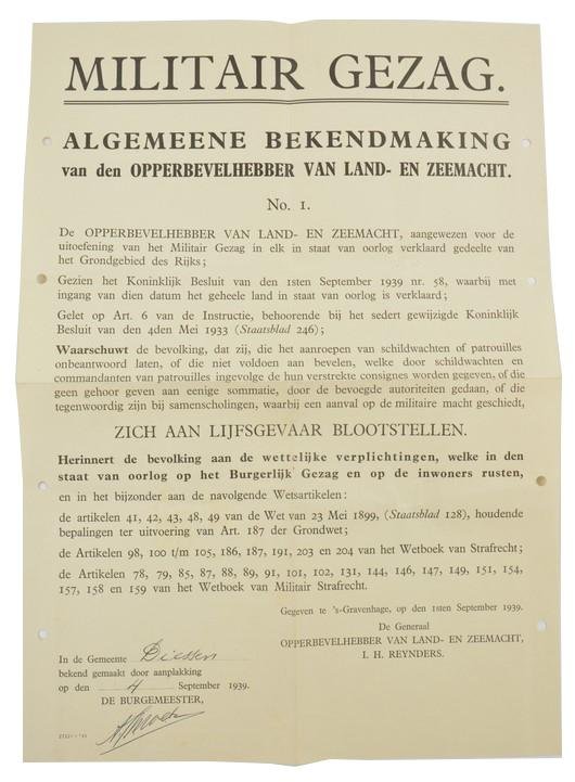 Dutch Military Authority Poster 'In State of War'