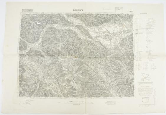 In a very good condition a German Mapcard of Judenburg Austria. The mapcard comes in a scale of 1: 75 000 and has a size of approx. 50x60cm. The mapcard is marked 'Sonderausgabe,nur für den Dienstgebrauch!