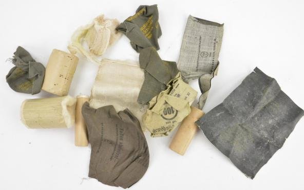 In a used condition a set of German First Aid Bandage wraps. Very nice to make a display with. Not often you find used wraps of German First Aid bandages.