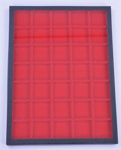 A set of two new Riker type 160 Display Showcase with 35 Red Coloured Compartments.The Riker display is the populair and original US made display.Produced in a black chipboard bottom and border with a glass top and a plastic 35 Red Coloured Compartments plate inside.The Europian Size of the displaycase is 41x31x2cm.Price is for two type 160 Displays!Your Insignia/Medals/Documents shall look way better inside these displays!