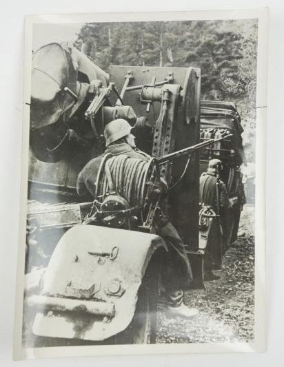 In a very nice condition a German Wehrmacht Press Photo. The photo contains a German March on the eastern front with soldiers taking cover.Size approx.18x12cm A very nice picture dated 1942 and printed in Paris.