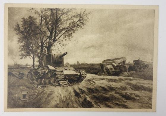 In a very nice conditon a German WW2 postcard of Arthur Ahrens called 'After the panzer battle at Ostrow (Poland). A very nice card!