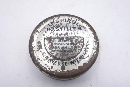In a nice used condition a pre-wartime /wartime German tin can of 'Inspirol Pastillen'. These were used for cold and fever. very nice for display!