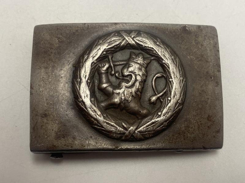 Original WW2 period Finnish army steel belt buckle. No makers mark as standard with these buckles. Very nice period example.