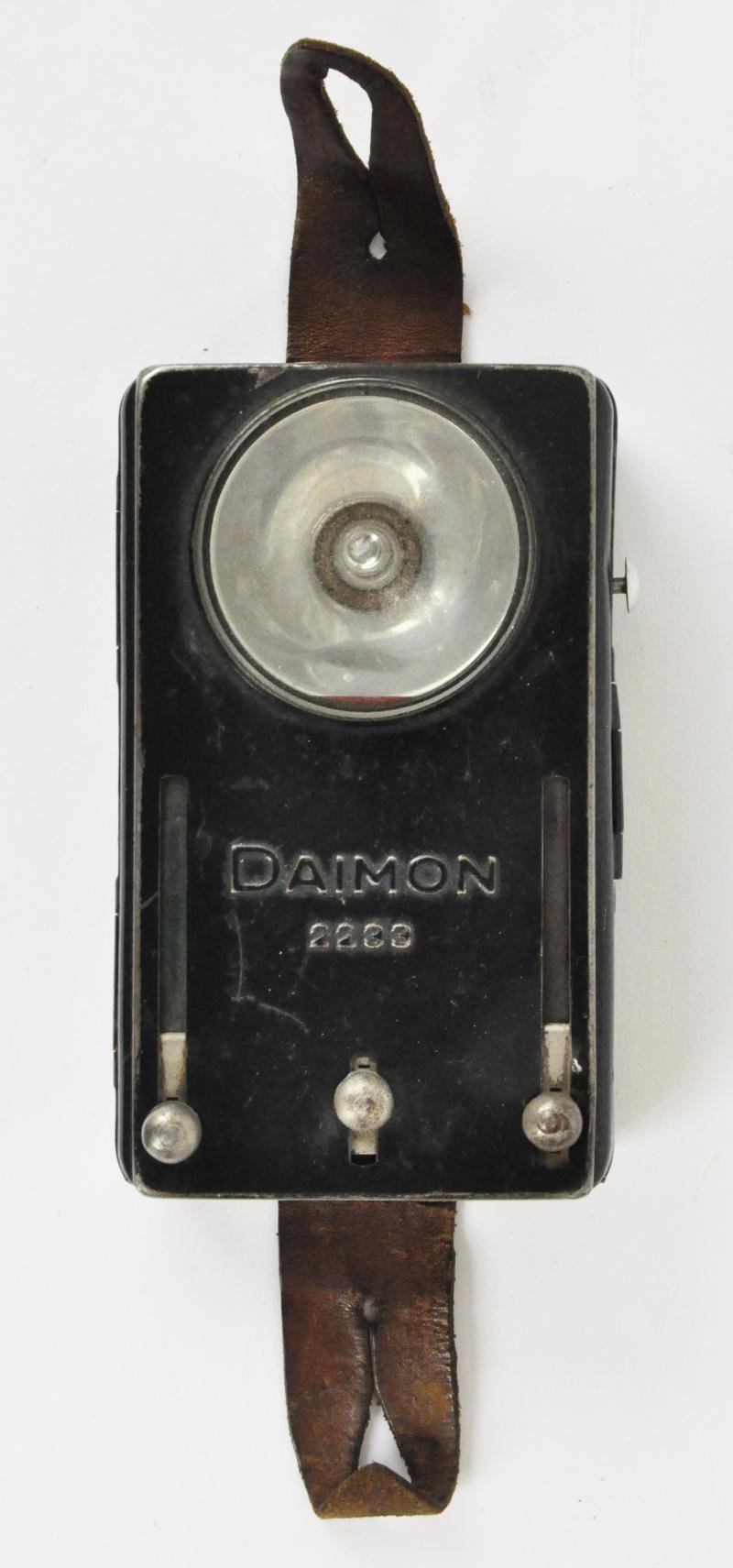 With three colour filters & marked 'DAIMON' for the well known torch manufacturer of the period. Complete with two button tabs to rear for hanging from the uniform.