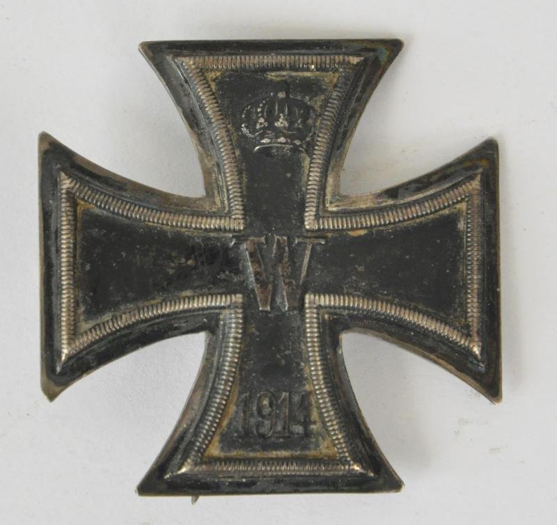 A very good convex Iron Cross First class in silver of Imperial Germany with 'W' cypher & 1914 to face. When one examines the pin to the rear of the medal it is apparent that this is most likely an early WW2 produced example purchased by an officer for wear on his uniform . The number '800' is visible to the bottom edge of the reverse.