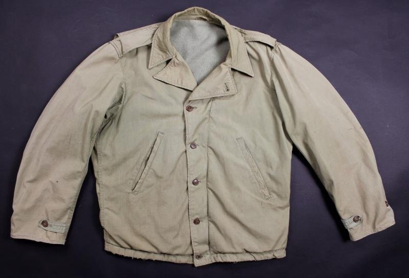 As worn by the American GI in WW2 this the M41 jacket was also worn on the beaches of Normandy in June 1944. A very good example with original working TALON zip. Jacket has its original buttons to front & two to each cuff & rear waist with only the bottom one replaced. Interior blanket lining intact. A jacket with moderate wear there is the odd small stitch repair in places. An approx 40in chest with arm length from shoulder seam to cuff edge an approx 57cm ( Sizes are not guaranteed).
