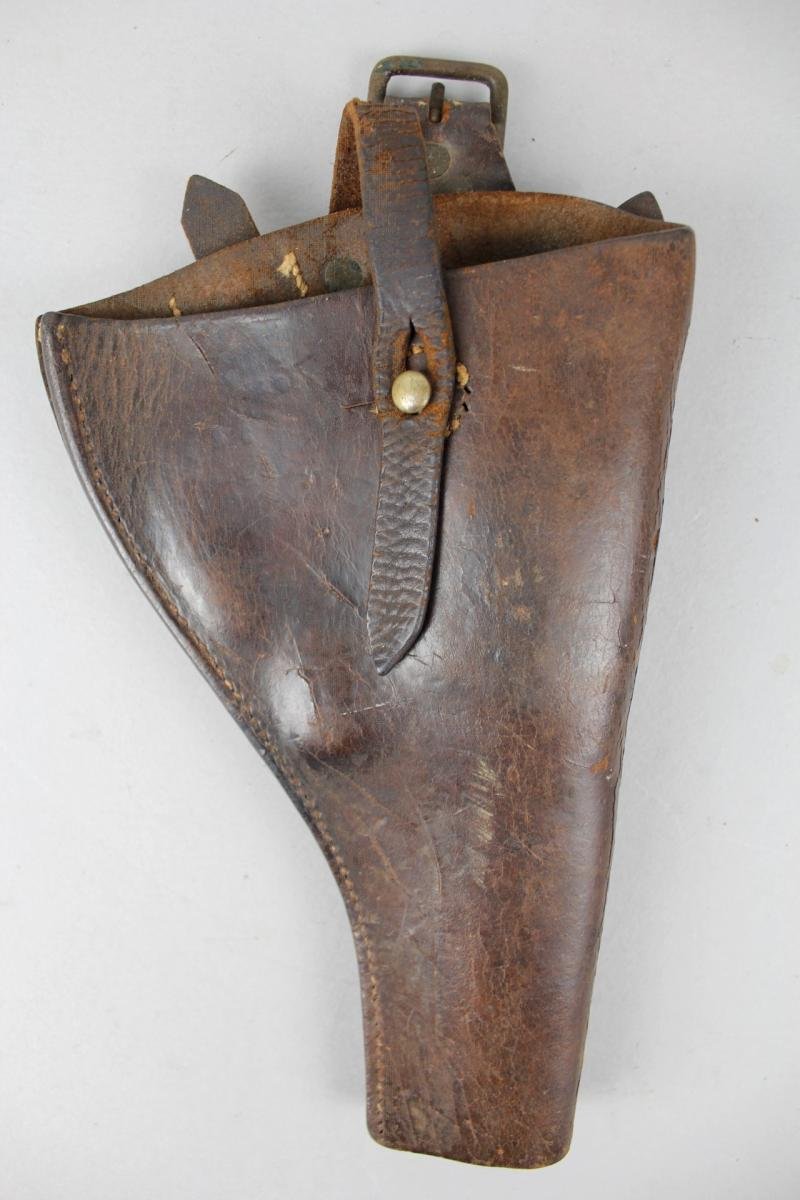 WW1 British '14 Pattern open topped pistol holster for those armed with the service revolver such as tank crewmen , machine gunners etc. In very good supple condition with all of its buckles & tabs intact. Very faint 1916 date to front.