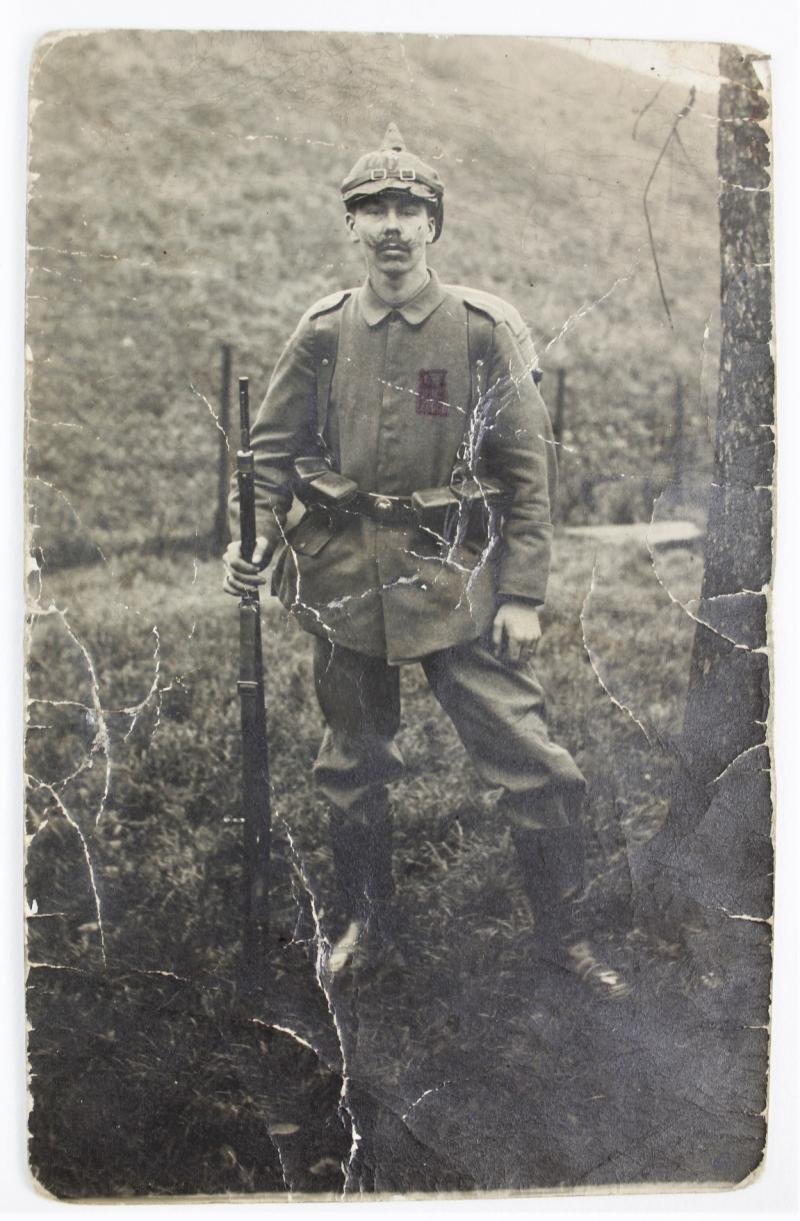 A postcard photo of a soldier from the 40th Fusilier Regiment who were part of XIV Corps ( Baden ) 28th Div, 56th Inf Brigade . Fought at Notre-Dame De Lorette amongst other notable places.
