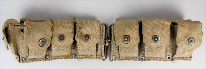 WW2 tan webbing US GI cartridge belt for clips of Garand rifle ammunition or the Springfield. Used condition with fraying in places , internal pop studded dividers all present bar one.